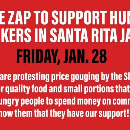 PHONE ZAP Supporting Hunger Strikers in Santa Rita Jail: Friday, January 28